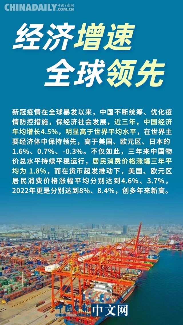 作為全球第二大經(jīng)濟體的中國,自新冠疫情暴發(fā)以來,不斷統(tǒng)籌、優(yōu)化疫情防控措施,全力保經(jīng)濟社會發(fā)展。三年來,中國經(jīng)濟年均增長4.5%,明顯高于世界平均水平,遠(yuǎn)高于美國、歐元區(qū)、日本等。2022年,中國經(jīng)濟總量再上新臺階。