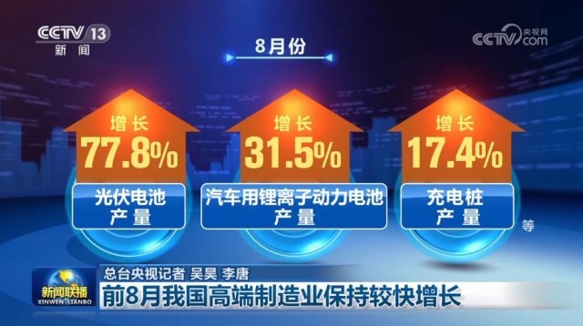 前8月我國高端制造業(yè)保持較快增長