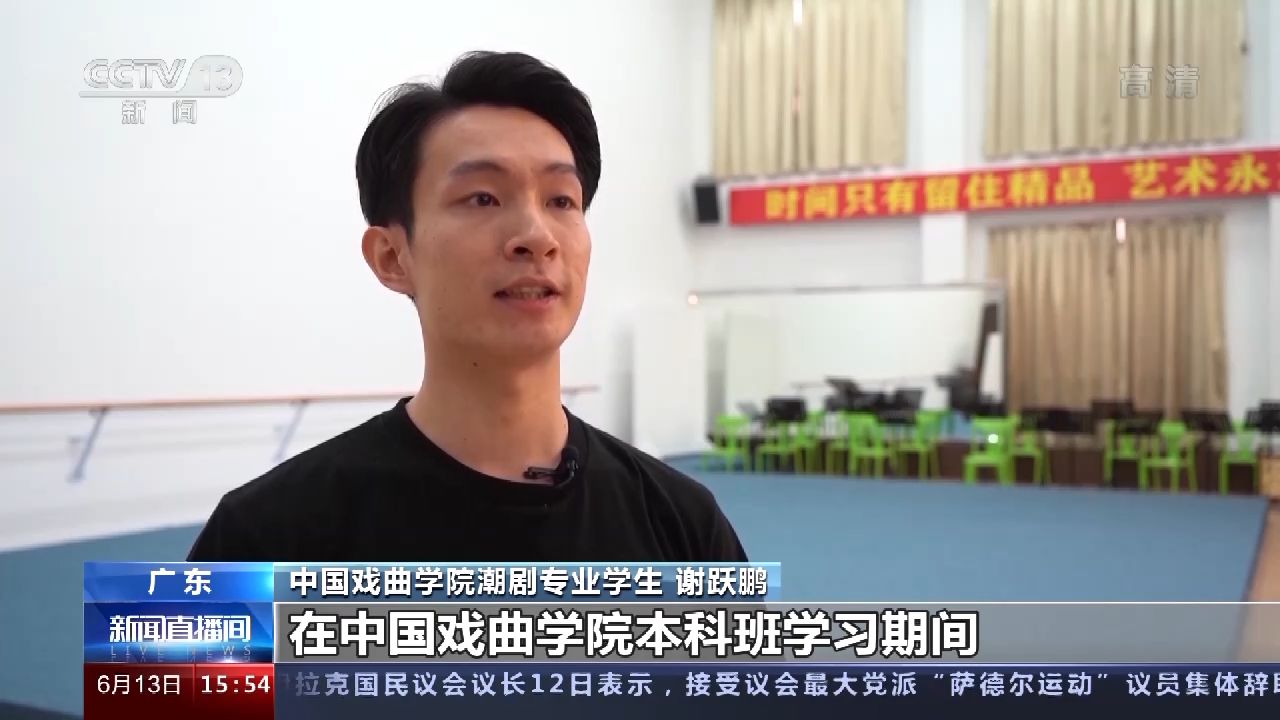 中國戲曲學院潮劇專業學生 謝躍鵬:本身我是武生行當,在中國戲曲學院本科班學習期間,我也是有意識在武戲方面下功夫,希望自己能學到更多規范性的動作,一些高難度技巧。我還希望盡自己所能,把這些知識傳承給更多年輕人,把更多的武戲呈現給觀眾。