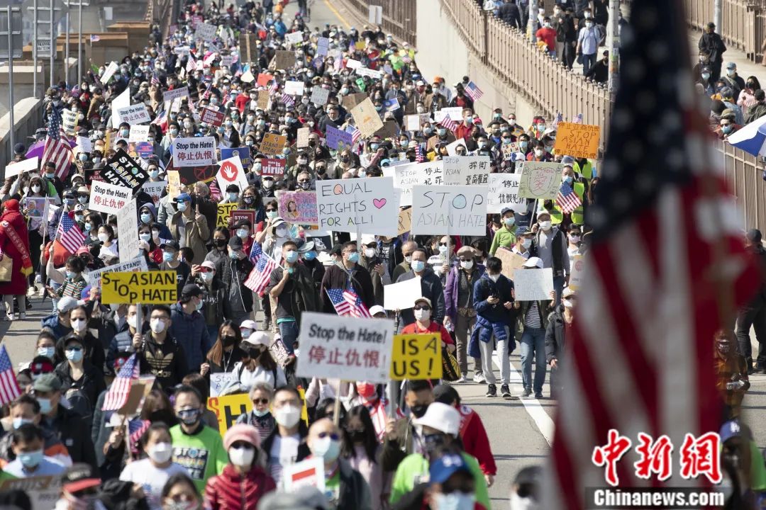 2021年,美國亞裔民眾受到種族歧視侵害事件頻發,針對亞裔的仇恨犯罪備受社會關注。圖為2021年4月,紐約舉行反仇恨亞裔大游行。廖攀 攝