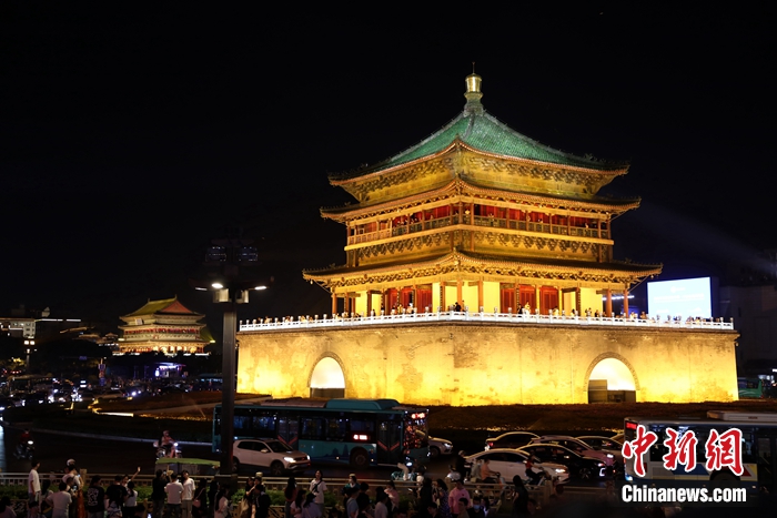 圖為夜色中的西安鐘鼓樓。張遠 攝