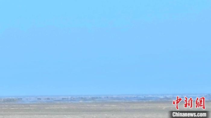 在海市蜃樓觀測點,沙漠上出現(xiàn)一片湖面,隱約能看到湖面上波光粼粼,水波隨風(fēng)翻滾。 孜瓦爾古麗·卡德爾 攝