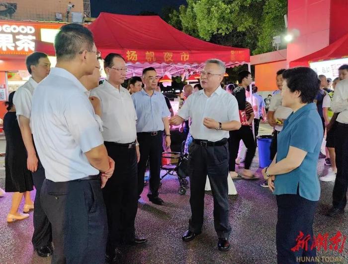 沈曉明一行到了位于芙蓉區東屯渡街道的揚帆夜市,沿街走訪攤點,詳細了解商戶經營情況,仔細察看燃氣、用電安全等情況。