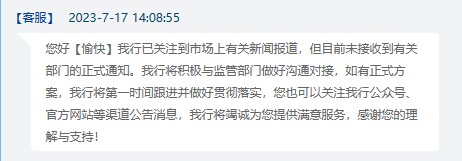 17日,中新財經記者咨詢工商銀行、建設銀行、農業銀行、招商銀行、匯豐銀行等多家銀行的客服人員或營業網點貸款經理,得到的回復均大同小異:暫沒有接到正式通知,將積極做好溝通對接,如果有正式方案將第一時間跟進并貫徹落實。