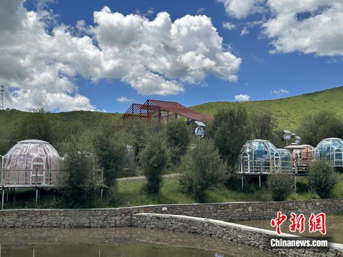 在園區內,除了大面積的草場,還能看見一些臨水而建、顏色各異的圓形房間。王春貴介紹稱,那是供游客休閑的星空房。目前,紅原牦牛現代農業園區正朝著牧旅融合的道路發展,咖啡屋、星空房等休閑設施以及牧旅融合體驗區已初步建設完成。“全部建成以后,游客還能在園區內體驗牦牛喂養。”王春貴說。