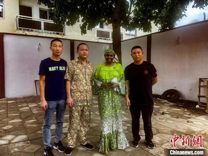 服務(wù)于山西援非醫(yī)療隊(duì)的廚師劉長東(左二)受邀為當(dāng)?shù)刭e客提供有中國特色的餐點(diǎn)。山西援非醫(yī)療隊(duì)供圖