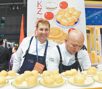 8月17日,在新疆烏魯木齊舉行的2023(中國)亞歐商品貿易博覽會上,來自哈薩克斯坦的廚師制作該國美食。