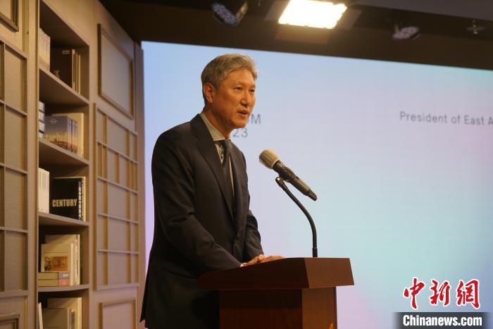 圖為韓國文化藝術(shù)委員會委員長鄭柄國致辭。記者 劉旭 攝