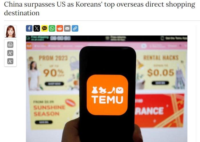 報道指出,從國家和地區來看,韓國2023年海外直購市場的營業額增長,主要是受中國帶動。中國擁有阿里巴巴旗下的速賣通、拼多多旗下的Temu等購物平臺,憑借其價格優勢和網上促銷吸引了韓國消費者。