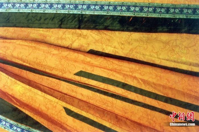 明清時(shí)期的“朱紅地纏枝紋暗花紗馬面裙”局部。毛建軍 攝