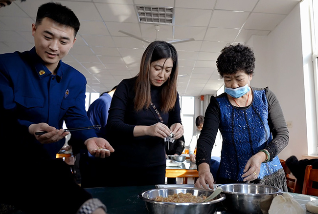 一起包餃子。 濰坊諸城市消防救援大隊供圖
