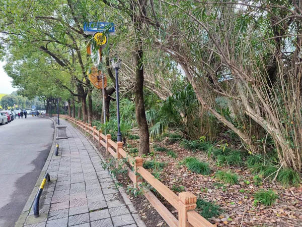 南龔居委會(huì)所在的虹橋路2222弄,涉及5個(gè)小區(qū)、2所學(xué)校,而從弄堂入口處起,長(zhǎng)達(dá)百米的“花園”沿線植被雜亂、空間荒蕪,外緣圍欄阻擋,且沒(méi)有入口,不僅影響居民區(qū)的美觀度,也影響了居民的生活舒適度。