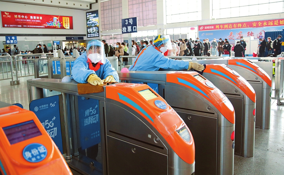近期,面對(duì)學(xué)生流、節(jié)后探親返程流、務(wù)工流“三流”疊加,運(yùn)城北站一手抓疫情防控,一手抓旅客組織,加強(qiáng)候車(chē)廳常態(tài)化疫情消殺制度,傾力確保旅客運(yùn)輸平穩(wěn)有序。(王文華攝)