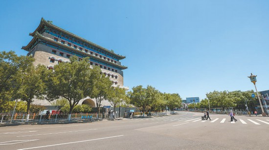 昨天,曾位于正陽門箭樓下的前門旅游集散中心完成騰退,路面和人行道恢復正常功能。 本報記者 鄧偉攝