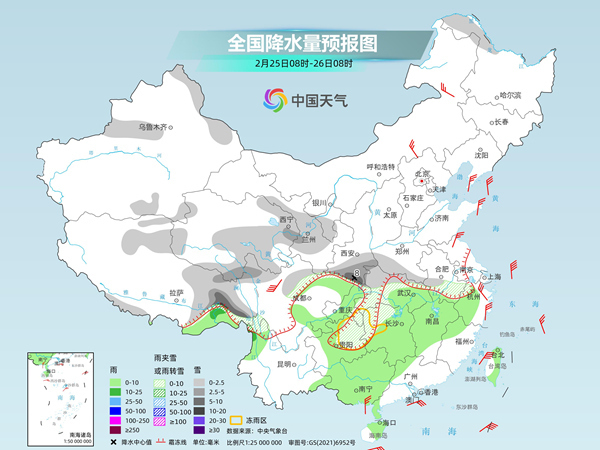 昨天,我國雨雪范圍仍然較大,雨雪強度有所減弱,監測顯示,湖北、湖南、安徽和江蘇等地出現雨雪冰凍天氣,青海東部、安徽中部、江蘇西部、湖北東部等地部分地區出現中到大雪,湖北荊州、咸寧、武漢、黃石和安徽安慶等地暴雪。湖北東南部、安徽南部、江蘇西南部、江西西北部、湖南東北部及西藏東南部、云南西北部等地部分地區出現雨夾雪5~15毫米,江西南昌局地26毫米。貴州中東部、湖南中南部、湖北東部、安徽中西部等地出現凍雨。江西中北部、浙江南部、福建西北部等地出現中到大雨,江西鷹潭和上饒,浙江麗水、衢州和臺州,福建南平等局地暴雨,江西上饒局地100~149毫米。