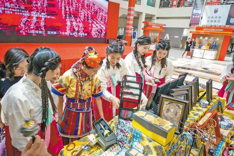 在吉林舉辦的“藏品入吉”展銷會上,游客在選購日喀則特產。