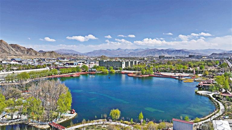幽靜的貢覺林卡明珠湖,吉林援藏工作隊以“東情西韻、珠聯璧合”為主題進行規劃設計,與毗鄰的原班禪夏宮貢覺林卡形成整體,已經成為日喀則城市旅游新景觀,市民休閑好去處;