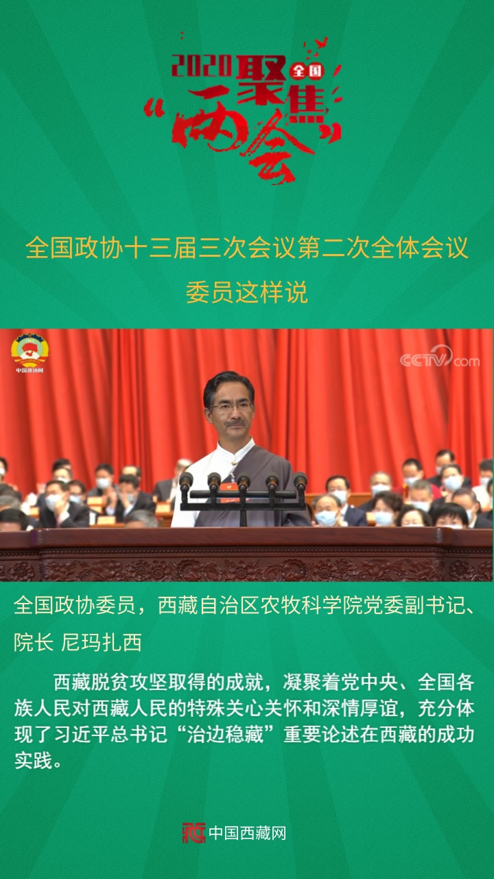 全國政協委員,西藏自治區農牧科學院黨委副書記、院長尼瑪扎西發言說,西藏脫貧攻堅取得的成就,凝聚著黨中央、全國各族人民對西藏人民的特殊關心關懷和深情厚誼,充分體現了習近平總書記“治邊穩藏”重要論述在西藏的成功實踐。