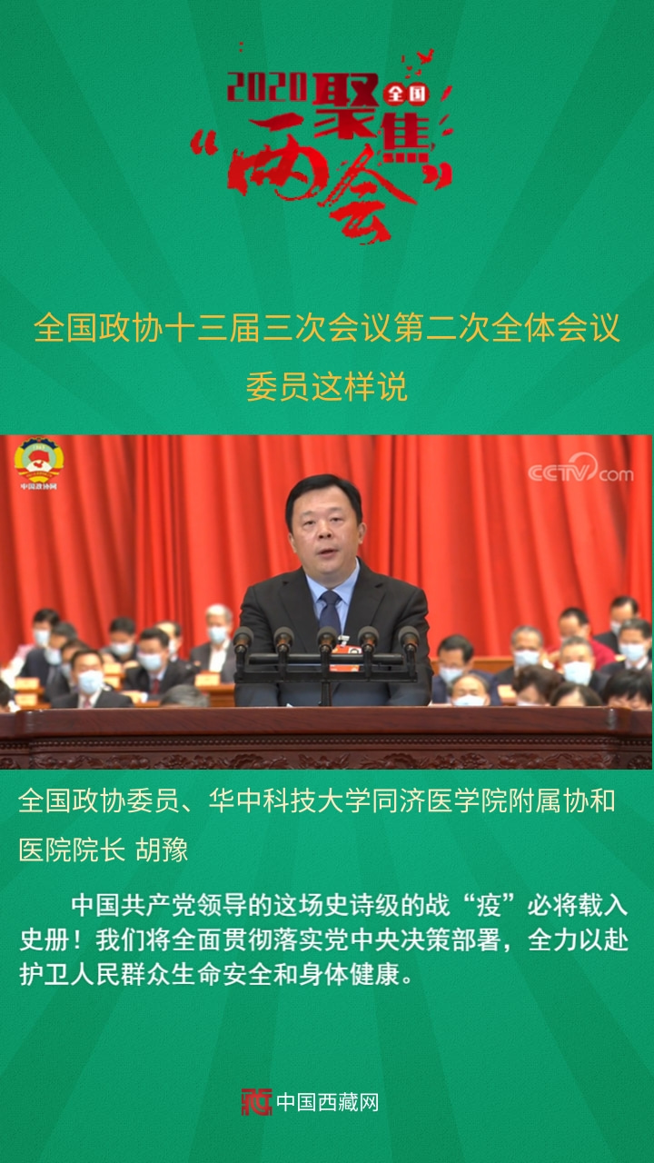 全國政協委員、華中科技大學同濟醫學院附屬協和醫院院長胡豫發言說,中國共產黨領導的這場史詩級的戰“疫”必將載入史冊!我們將全面貫徹落實黨中央決策部署,全力以赴護衛人民群眾生命安全和身體健康。