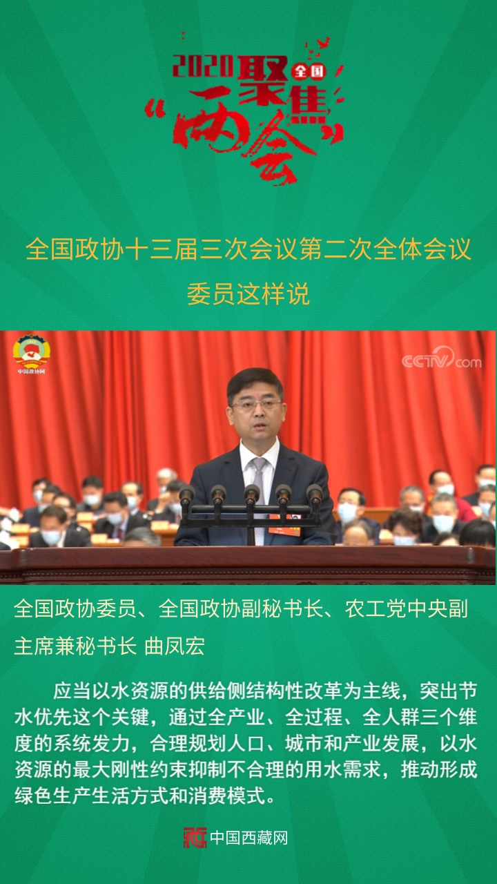 全國政協委員、全國政協副秘書長、農工黨中央副主席兼秘書長曲鳳宏發言說,應當以水資源的供給側結構性改革為主線,突出節水優先這個關鍵,通過全產業、全過程、全人群三個維度的系統發力,合理規劃人口、城市和產業發展,以水資源的最大剛性約束抑制不合理的用水需求,推動形成綠色生產生活方式和消費模式。