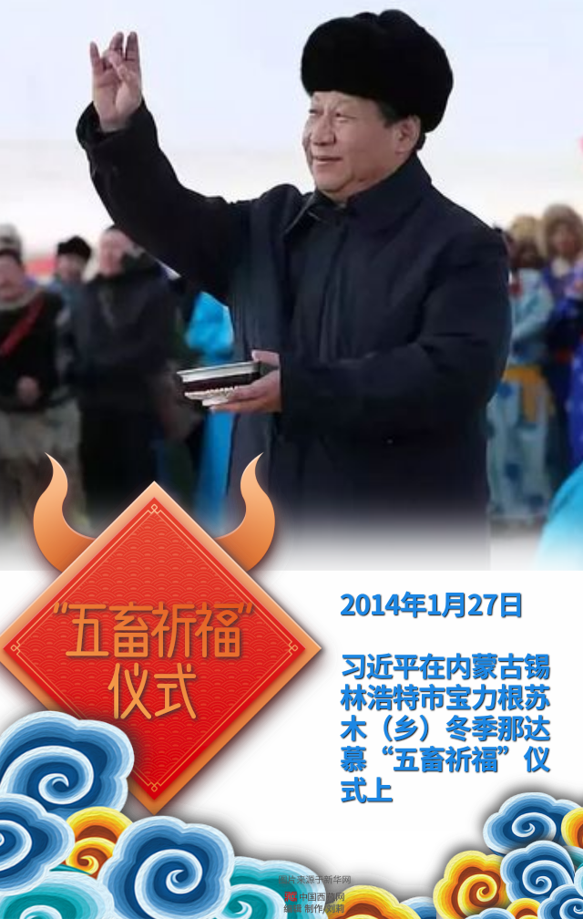 習近平在內(nèi)蒙古錫林浩特市寶力根蘇木(鄉(xiāng))冬季那達慕“五畜祈福”儀式上
