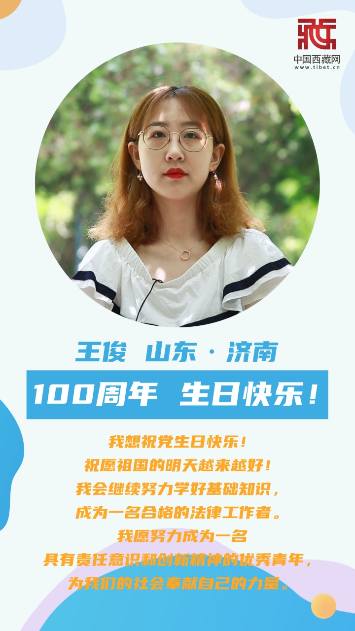 100年前,中國共產黨為苦難深重的中華民族帶來了光明與希望,100年后,中國人民在中國共產黨的帶領下,看到了中華民族偉大復興的曙光。在中國共產黨成立100周年之際,一起聆聽新時代青年學子送上的祝福!(制作/許娜 編輯/澤仁措姆)