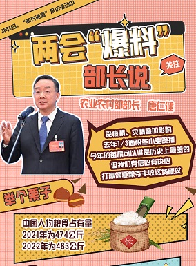 3月5日,“部長通道”采訪活動中,農業農村部部長唐仁健表示 受疫情、災情疊加影響,去年1/3面積冬小麥晚播,今年的苗情可以講是歷史上最差的,但我們有信心有決心打贏保夏糧奪豐收這場硬仗。[詳細] -