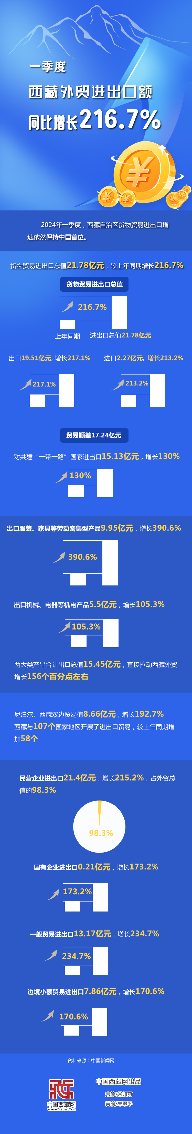 一季度西藏外貿進出口額同比增長216.7%