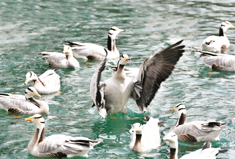 圖為拉薩宗角祿康公園嬉戲的鳥兒。 拉薩融媒記者 平措旺堆攝