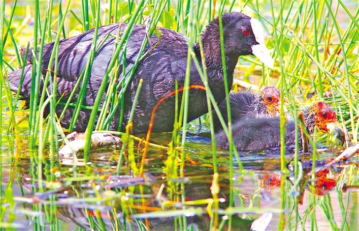 在一片湖光山色之中,不知從哪跳出一只戴勝鳥,引得小孩歡呼雀躍:“媽媽,你快看,那只鳥的嘴巴好尖好長啊。”“鳥的嘴巴又叫喙,又細又長是為了啄出藏在樹干里面的害蟲,它可是保護森林和農田的好衛士呢。”小孩的媽媽一邊散步,一邊幫助旁邊的“小問號”慢慢揭開大自然神秘的面紗……
