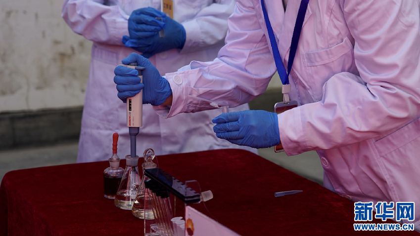 拉薩725油庫化驗人員正在演示甲醛快速檢測法(10月21日攝)。新華網 達珍 攝