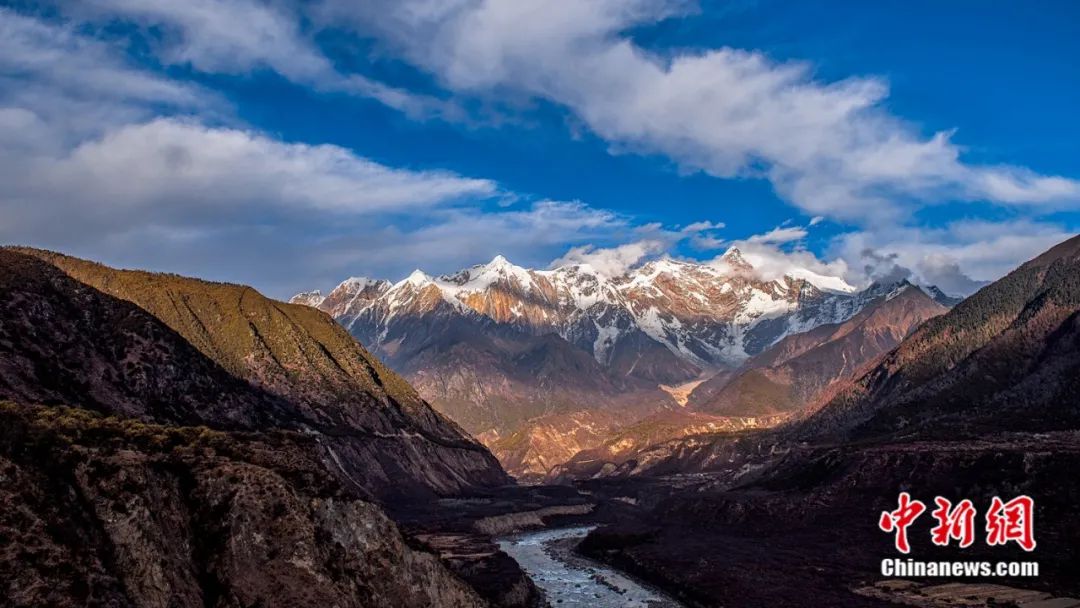 此時(shí)在雅魯藏布大峽谷,還能一眼望到“中國(guó)最美山峰”南迦巴瓦峰,海拔7782米的她已不是“十人九不見”,而是難得地露出了“直刺藍(lán)天戰(zhàn)矛”的真顏。
