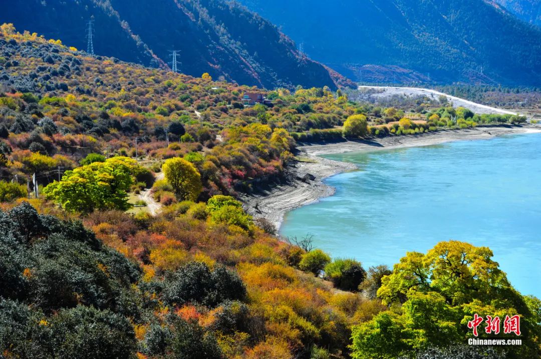 時(shí)值秋末冬初,全長(zhǎng)504.6公里,最深處6009米的雅魯藏布大峽谷呈現(xiàn)出別樣巍峨壯觀,兩岸五彩交織的森林上雪峰林立,谷底奔涌的雅魯藏布江碧水繞田,宛若童話中的仙境。