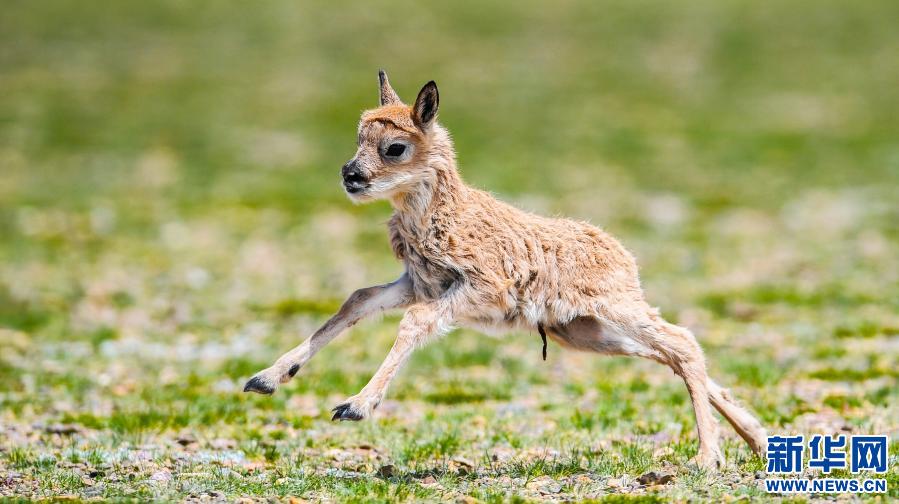 在西藏那曲市申扎縣境內拍攝的藏羚羊幼崽(2017年6月24日攝)。新華社記者 普布扎西 攝