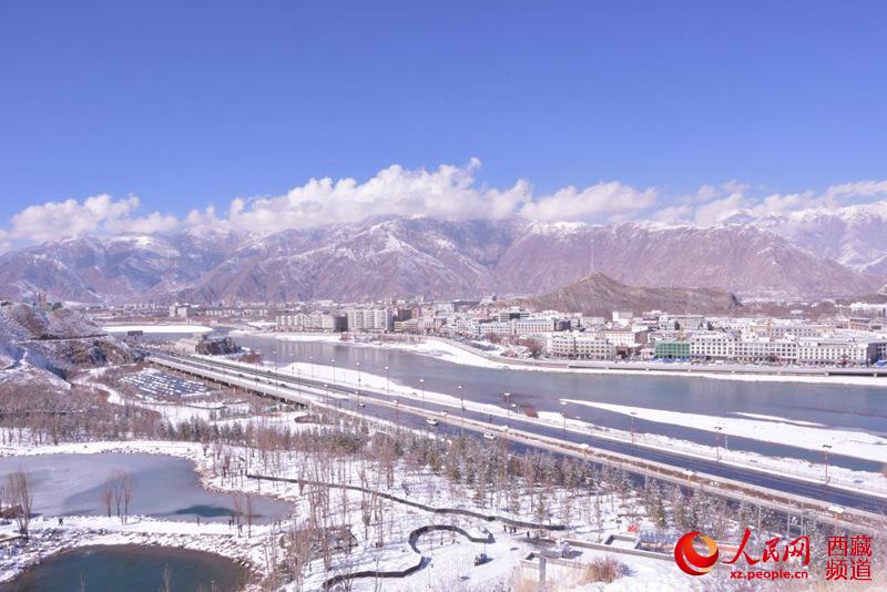 雪后的拉薩南環路。人民網 李海霞攝
