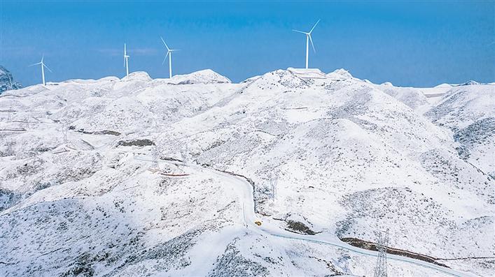 雪后的貴州盤縣四格風電場(2021年1月12日攝,無人機照片)。 新華社記者 陶亮 攝