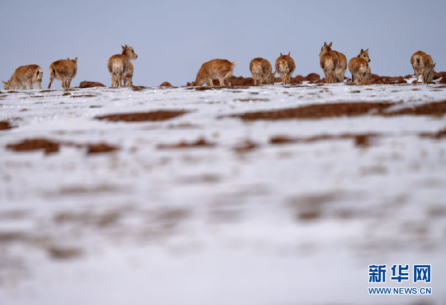 近日,可可西里迎來降雪,大量藏羚羊匯聚在可可西里五道梁地區,踏上遷徙之路。