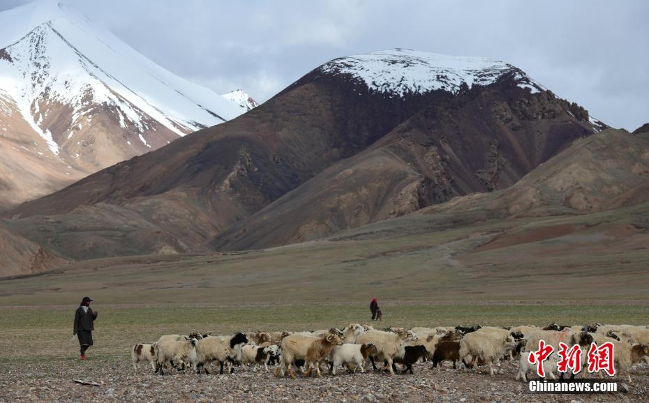6月19日,牧民在西藏那曲羌塘草原上放牧。羌塘草原位于西藏自治區(qū)北部,平均海拔超過(guò)4600米,是目前中國(guó)海拔最高、面積最大的自然保護(hù)區(qū)。這里是野生動(dòng)物的樂(lè)園,藏羚羊、藏原羚、藏野驢等珍稀野生動(dòng)物與雪山、草地、藍(lán)天、白云,構(gòu)成撼人心魄的壯美畫面。 中新社記者 貢嘎來(lái)松 攝