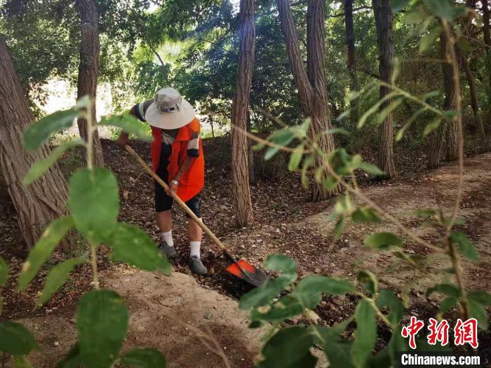 圖為護林員清理雜草。 史靜靜 攝