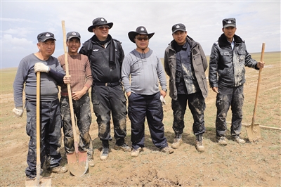 可可西里保護區工作人員在巡山途中。右三為布周。可可西里管理處供圖