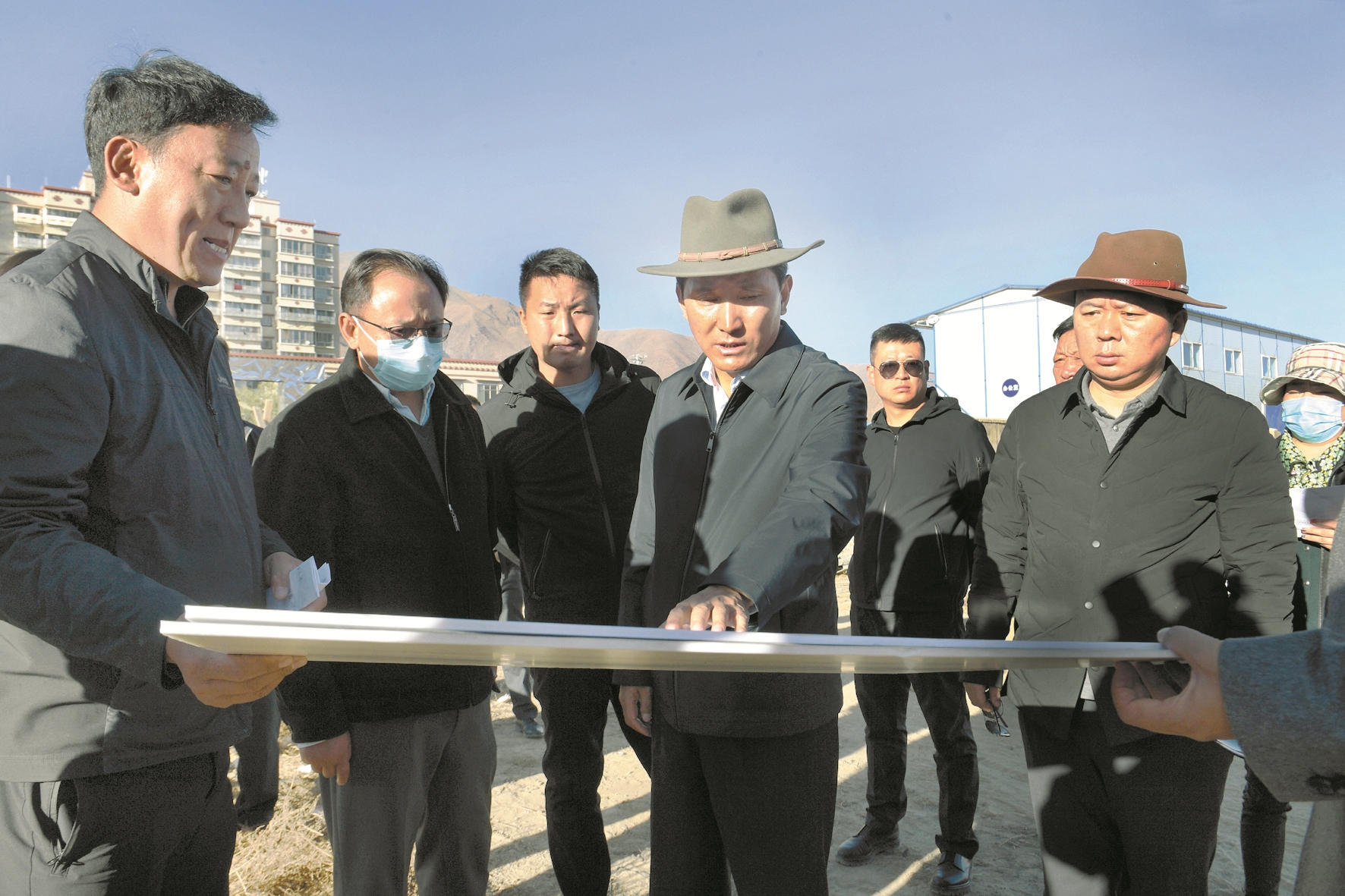 11月10日下午,市委副書記、市長果果實地調研納金水源地城市水系取水情況及我市固定資產投資、重點項目推進情況。圖為果果詳細了解拉薩城投房地產項目建設情況。拉薩融媒記者 巴桑次仁攝