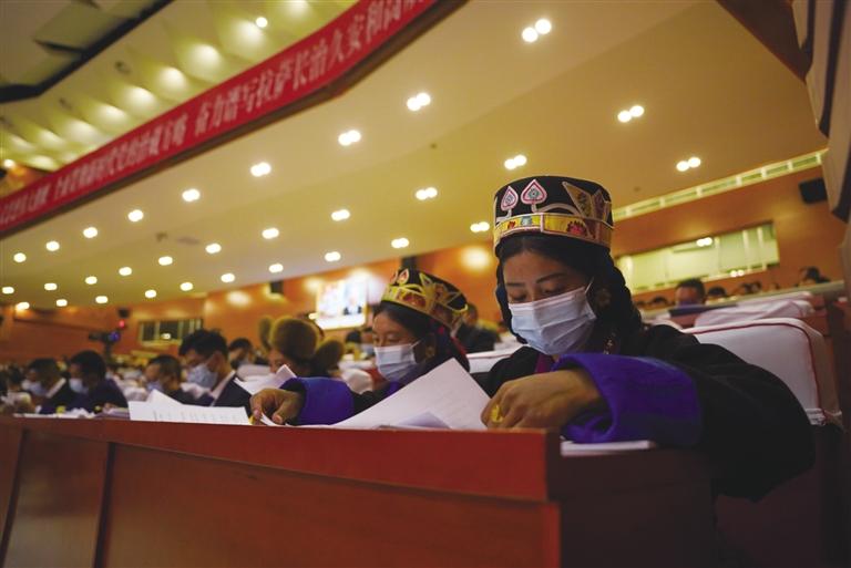拉薩市十二屆人大一次會(huì)議現(xiàn)場(chǎng)。圖/記者 阿旺尼瑪