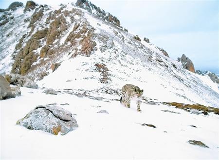 紅外線相機監測到的國家一級保護動物雪豹。(甘南州生態環境局供圖)