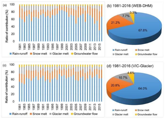 西藏自治區奴下水文站相關模擬的徑流組分比較。 中科院青藏高原所 供圖