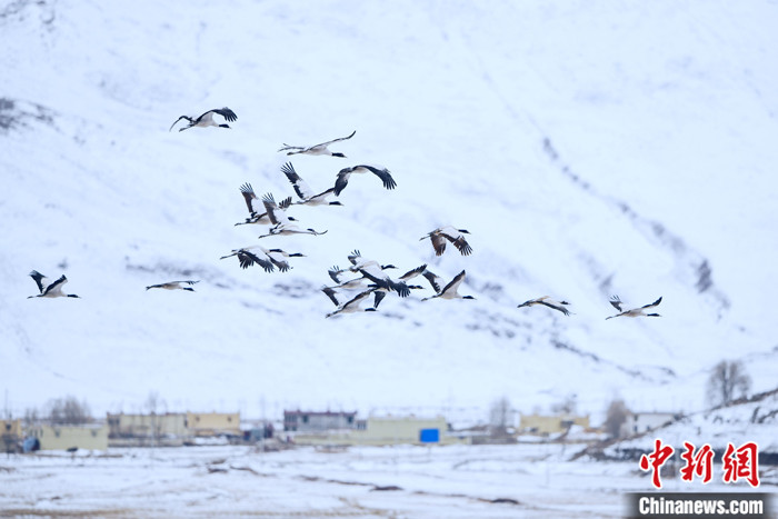 拉薩市林周縣為黑頸鶴投食 保障黑頸鶴安全越冬