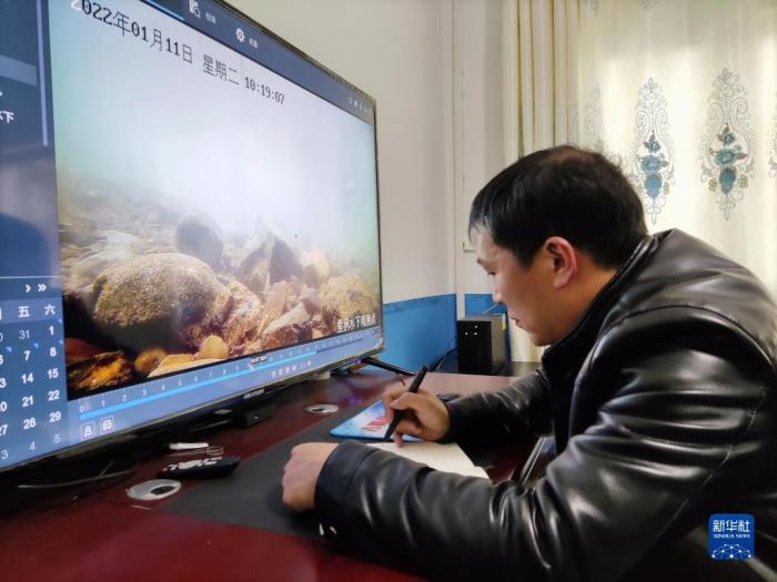 工作人員在云南省昭通市鎮(zhèn)雄縣魚(yú)洞生態(tài)觀測(cè)點(diǎn)記錄監(jiān)測(cè)情況(2022年1月11日攝)。新華社記者 林碧鋒 攝