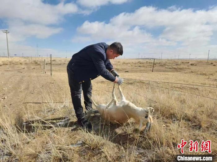 據介紹,3月12日11時許,青藏集團公司西寧電務段哈爾蓋信號車間哈爾蓋信號工區的3名職工在徒步前往管內那仁中繼站檢修信號設備途中發現,有動物掛在網圍欄,無法掙脫。