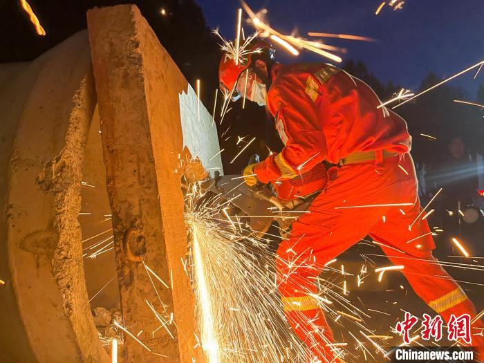 地震救援競賽現場,消防員正在進行破拆。姚天銳 攝