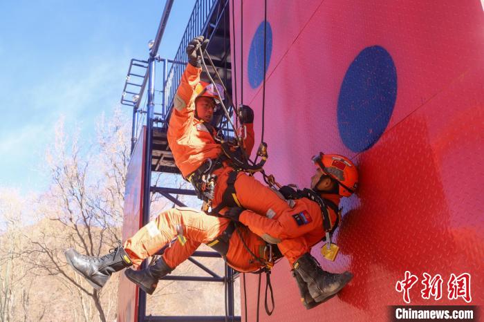 比拼繩索速降。姚天銳 攝