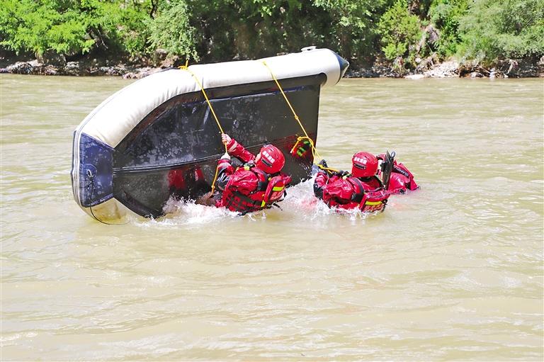 急流救援入水方式。本文配圖由記者 楊小娟 攝